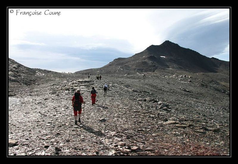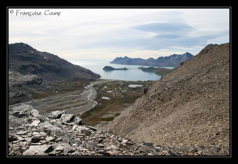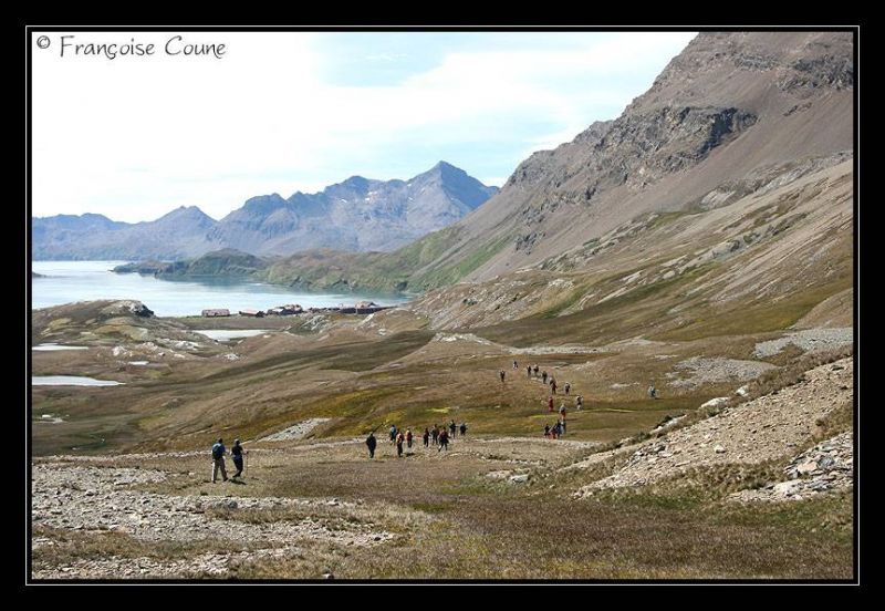 Shackelton et ses hommes descendirent Breakwind Ridge à l’ouest de la baie, traversèrent la plage de Whistle Cove et continuèrent à l’est vers la station baleinière de Stromness, étape finale de leur traversée de l’île.