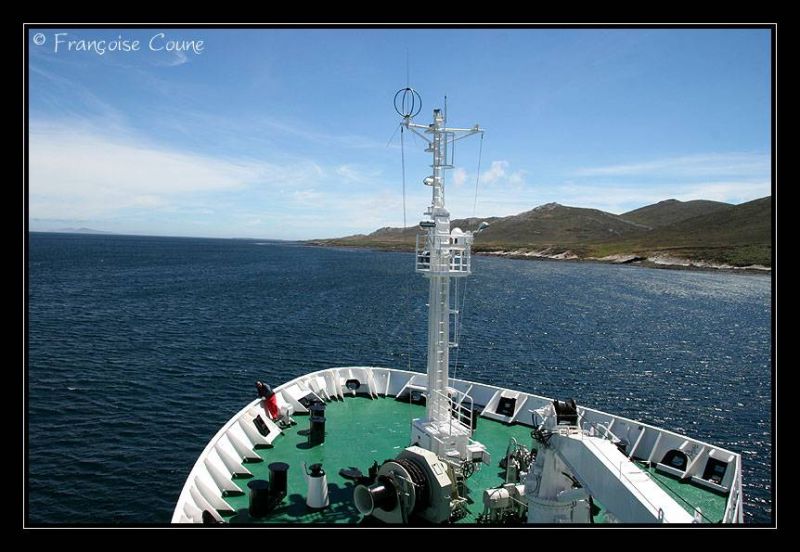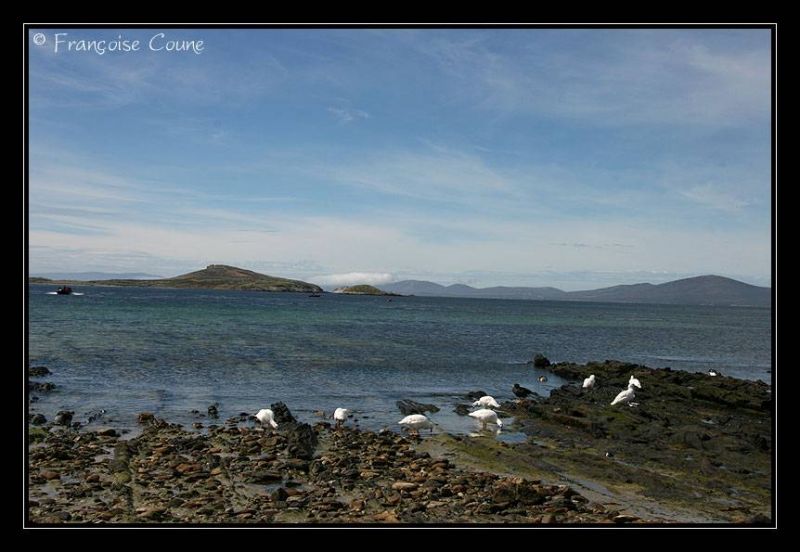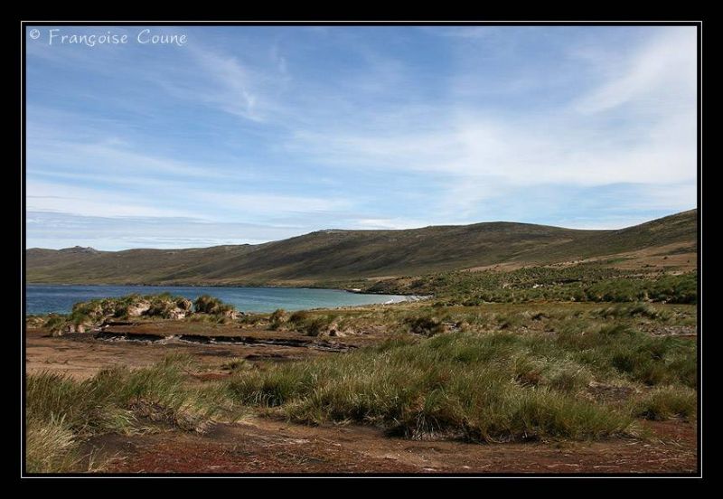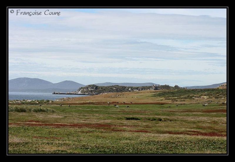Carcass Island se situe au Nord-Ouest de la Grande Malouine (en anglais West Falkland) et prend son nom du bateau HMS Carcass qui visita l’île à la fin du 18e siècle. C’est à cette période que le légendaire marin danois Charles Hansen a établi un élevage de moutons sur les 1,894 ha de l’île. Hansen a construit la colonie, clôturé des aires pour le bétail et planté de larges zones de tussack pour fournir des aires hivernales de pâturage à ses animaux. La présence de plantation de tussack et l’absence historique de chats, rats et souris sur cette île a pour résultat une grande population de petits oiseaux. Dauphins de Peale, dauphins de Commerson et Cormorans de Magellan sont aussi souvent vu dans la baie. Carcass Island appartient actuellement à Rob and Lorraine McGill qui vivent sur l’île depuis 30 ans. Cependant, durant l’été, la population de l’île peut grossir jusqu’à 4 personnes.