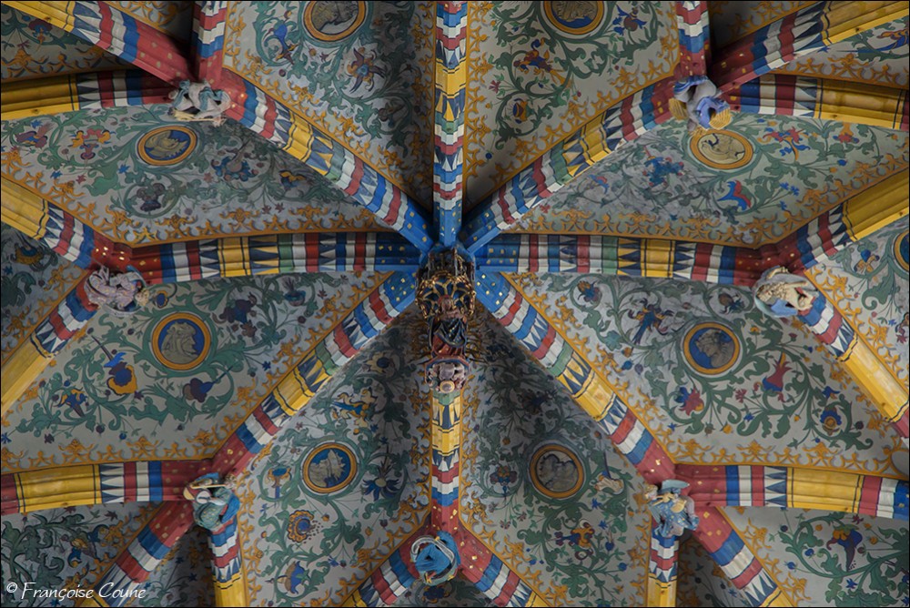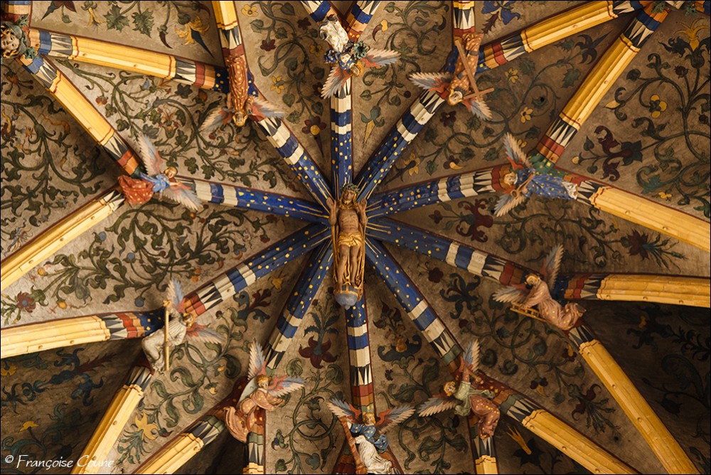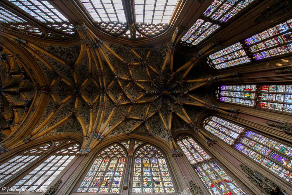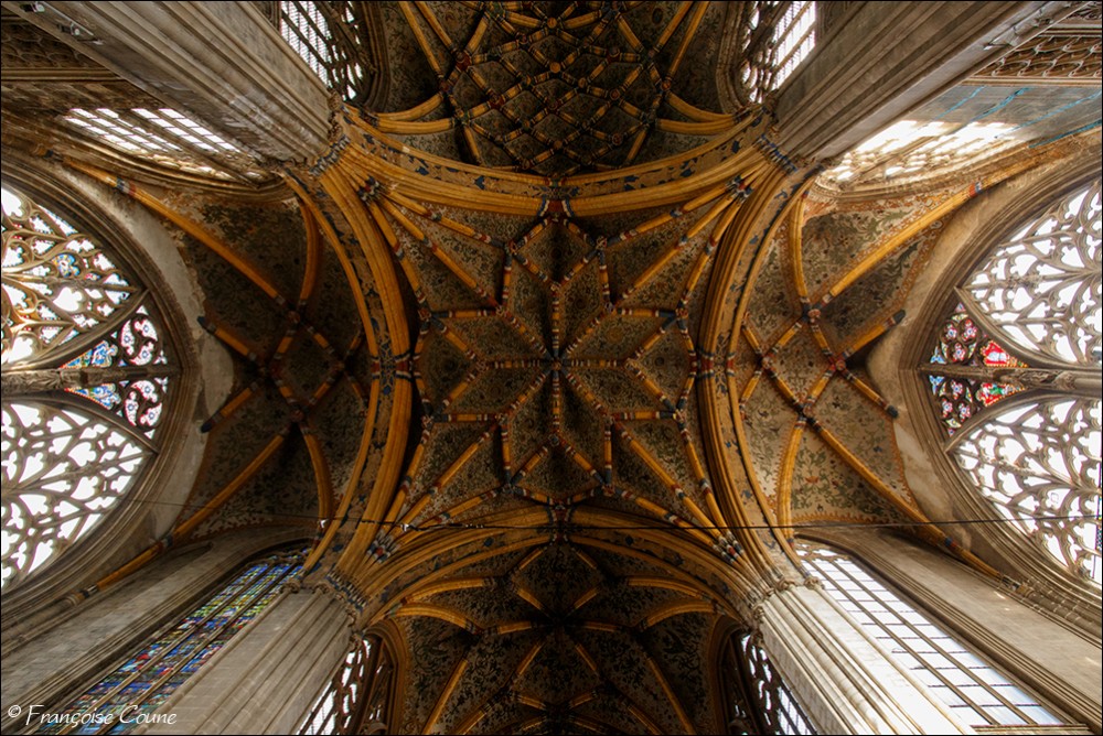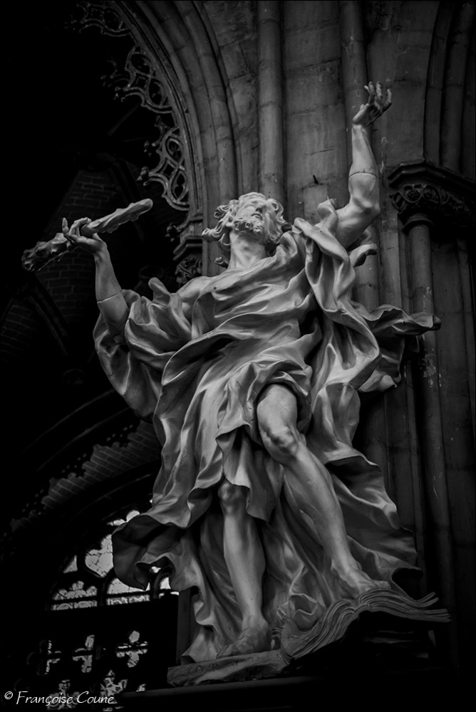 After the concordat of 1801, the collegiate church of Saint-Jacques became a parish church, the main cloister, a park and the demolished abbey buildings were replaced by modern buildings. The current Gothic church, whose construction was completed in 1538, replaced the original Romanesque church. The vault and its paintings are from the same period, as well as the stained glass windows in the choir dating from 1525 to 1531. The Renaissance portal added in 1558 is attributed to Lambert Lombard. The primitive church had a Romanesque front section and an octagonal bell tower dated around 11702. Only the front section with one of its three towers has been preserved. Among the most remarkable elements, the nave, real stone lace; the exceptional vault with more than 150 keystones in the central nave; the 14th century stalls; the Renaissance organ case and its Renaissance-style instrument rebuilt by the Schumacher organ factory in Eupen; the famous stained-glass window with the coats of arms of 32 old trades (16th century); the baroque statues of Del Cour and his school (late 17th century); and the Coronation of the Virgin (sculpted group from the 14th century). The stained-glass windows of Saint-Jacques are considered by some authors to be perhaps the most beautiful in Belgium. The French archaeologist Adolphe Napoléon Didron does not even hesitate to rank them at the top of all those that survive from the 16th century. |