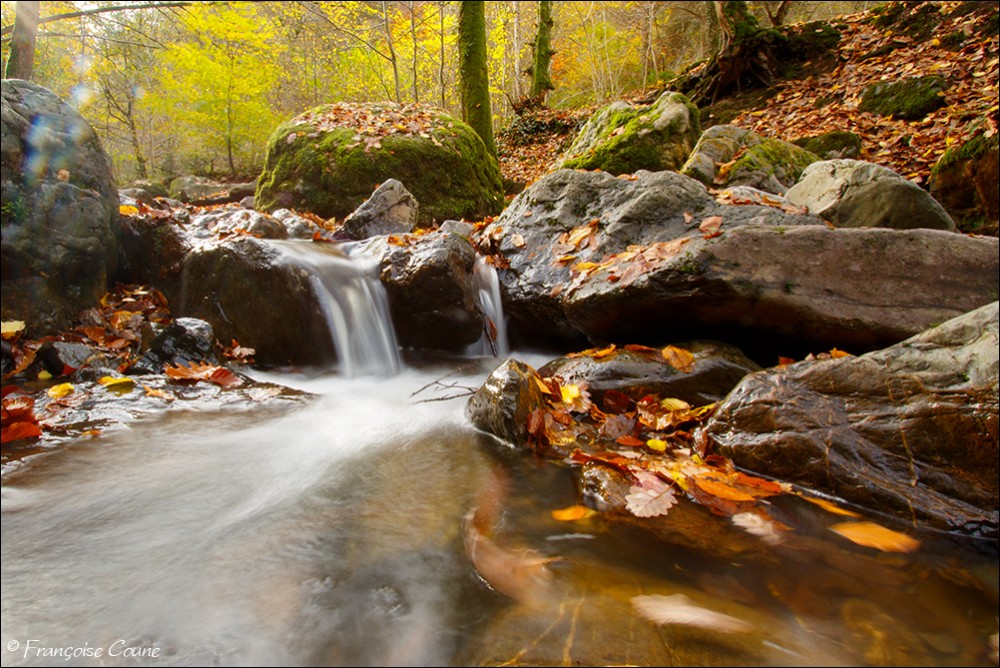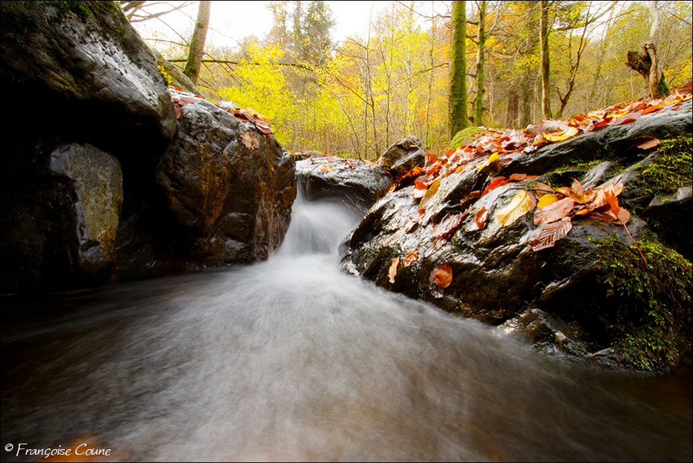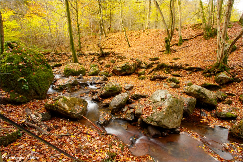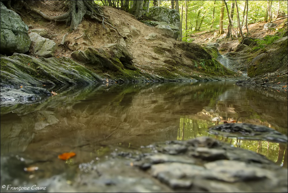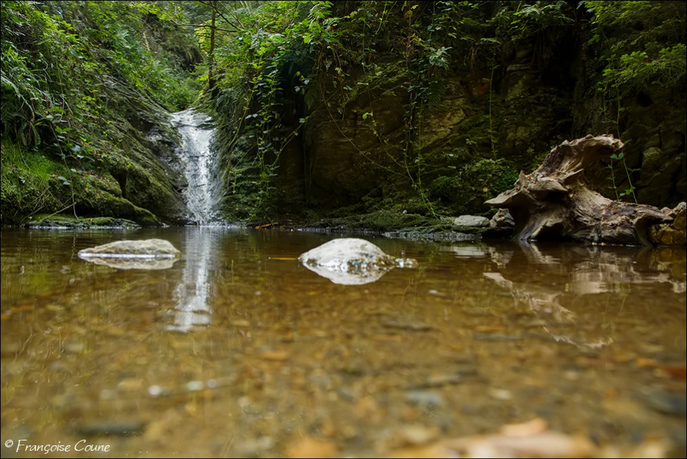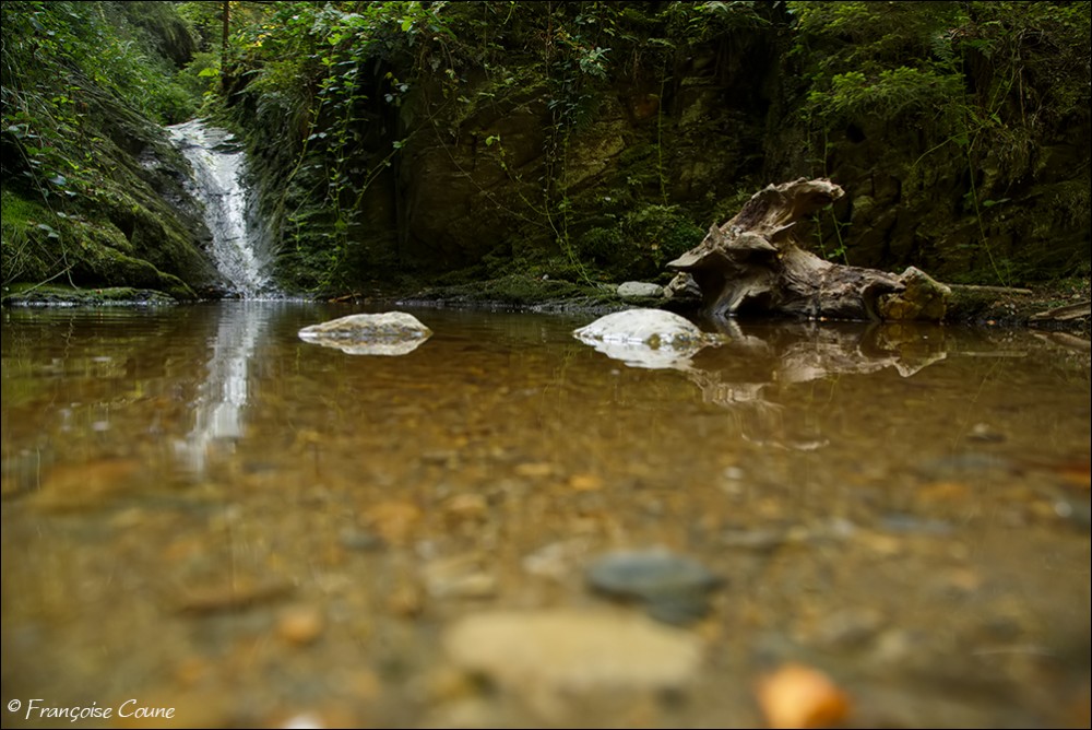 Its original name is actually "Doulneux" (in Latin Dulnosus) reminding that it comes from an alder grove (wood planted with alders). This surname already appears in 647 in a charter of Sigebert III, king of the Franks of Austrasia. During a mapping carried out during the occupation by Republican France, a cartographer confused the name of the stream by mistakenly attributing the name of a land where it emerges "En Inglin spau" (The source of Inglin). The Ninglinspo flows between Vert-Buisson (municipality of Theux) and Sedoz-Nonceveux (municipality of Aywaille). Torrential, it circumvents enormous blocks of quartzite, shaping here and there a set of successive “vats” or “baths” with evocative names like the Diana bath, the Otter bath, the Hermes bath, the Naïades, the broth (or waterfall) of the Chaudière (tributary stream of the Ninglinspo), the Stag bath or the Venus bath. Over the 3 km of its course, the Ninglinspo descends from an altitude of 420 m to an altitude of 170 m, i.e. a drop of 250 m, making it one of the fastest rivers in Belgium with a average slope of 8%. It flows into the Amblève which has just crossed the Quarreux Fund. |