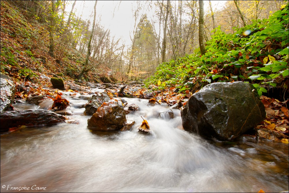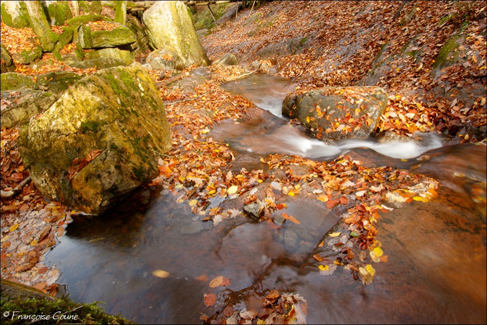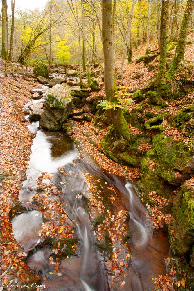 Its original name is actually "Doulneux" (in Latin Dulnosus) reminding that it comes from an alder grove (wood planted with alders). This surname already appears in 647 in a charter of Sigebert III, king of the Franks of Austrasia. During a mapping carried out during the occupation by Republican France, a cartographer confused the name of the stream by mistakenly attributing the name of a land where it emerges "En Inglin spau" (The source of Inglin). The Ninglinspo flows between Vert-Buisson (municipality of Theux) and Sedoz-Nonceveux (municipality of Aywaille). Torrential, it circumvents enormous blocks of quartzite, shaping here and there a set of successive “vats” or “baths” with evocative names like the Diana bath, the Otter bath, the Hermes bath, the Naïades, the broth (or waterfall) of the Chaudière (tributary stream of the Ninglinspo), the Stag bath or the Venus bath. Over the 3 km of its course, the Ninglinspo descends from an altitude of 420 m to an altitude of 170 m, i.e. a drop of 250 m, making it one of the fastest rivers in Belgium with a average slope of 8%. It flows into the Amblève which has just crossed the Quarreux Fund. |